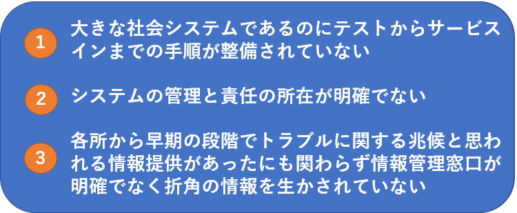 が社会システムの開発及びトラブル対応について考えさせられる事例と思われます