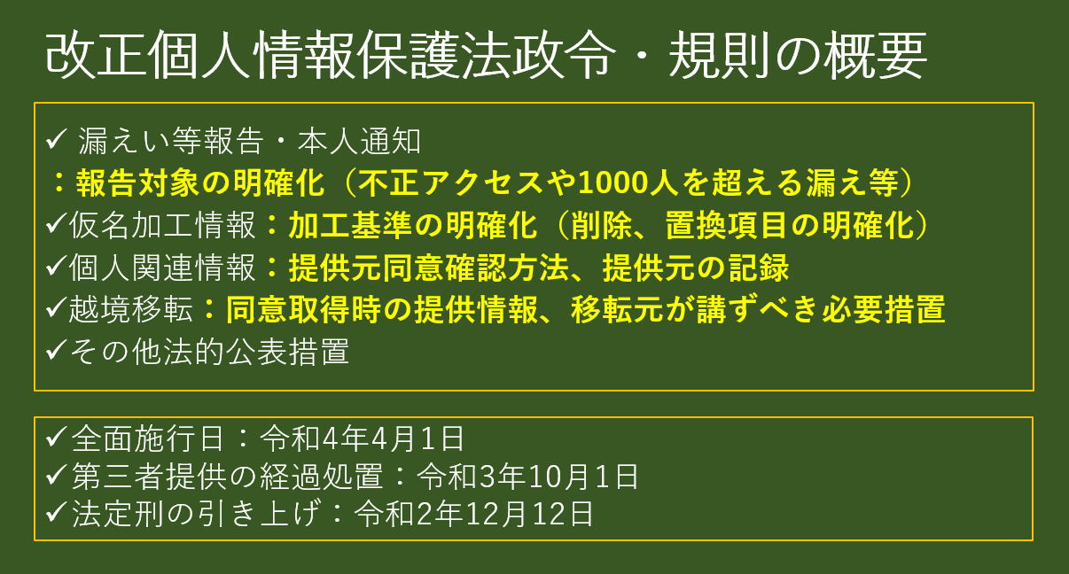 第162回 個人情報保護委員会資料3-1 令和2年改正個人情報保護法政令・規則案の概要 -個人情報保護委員会- (ppc.go.jp)