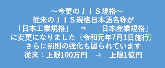 「日本工業規格」から「日本産業規格」に変更になりました